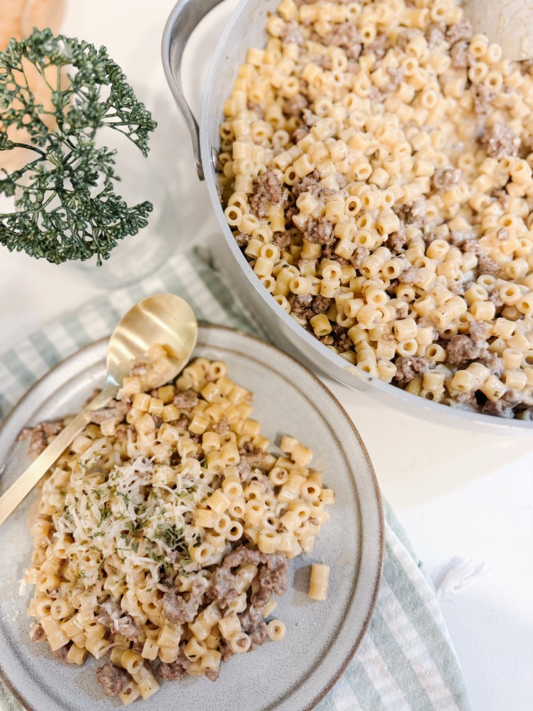 Creamy, cozy, and done in one pan (aka less dishes = more winning). This beef stroganoff comes together fast and is a hit with picky eaters.